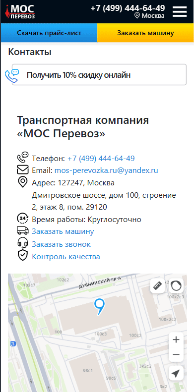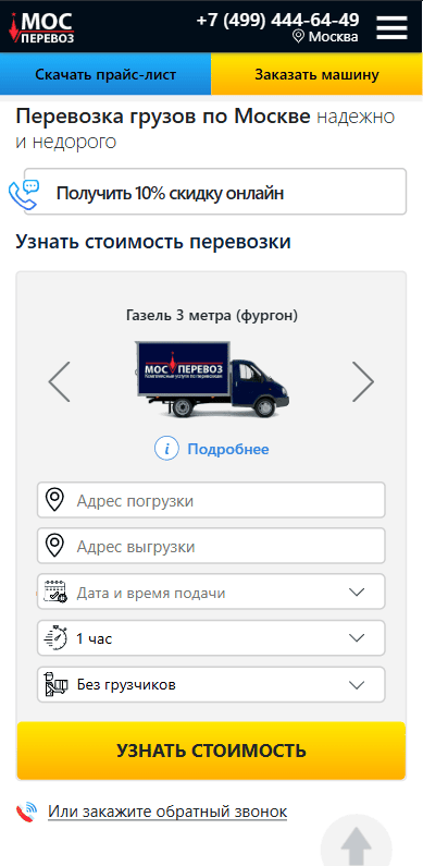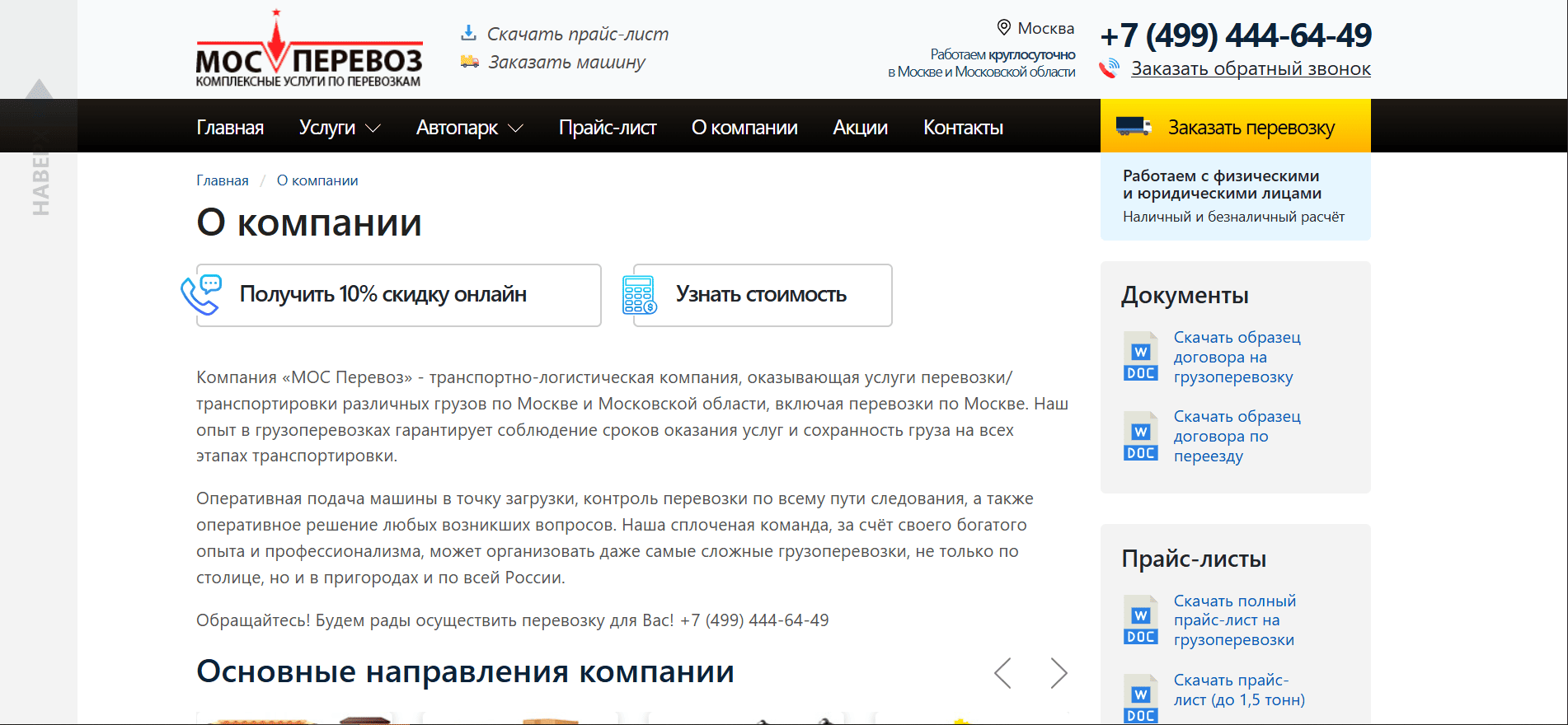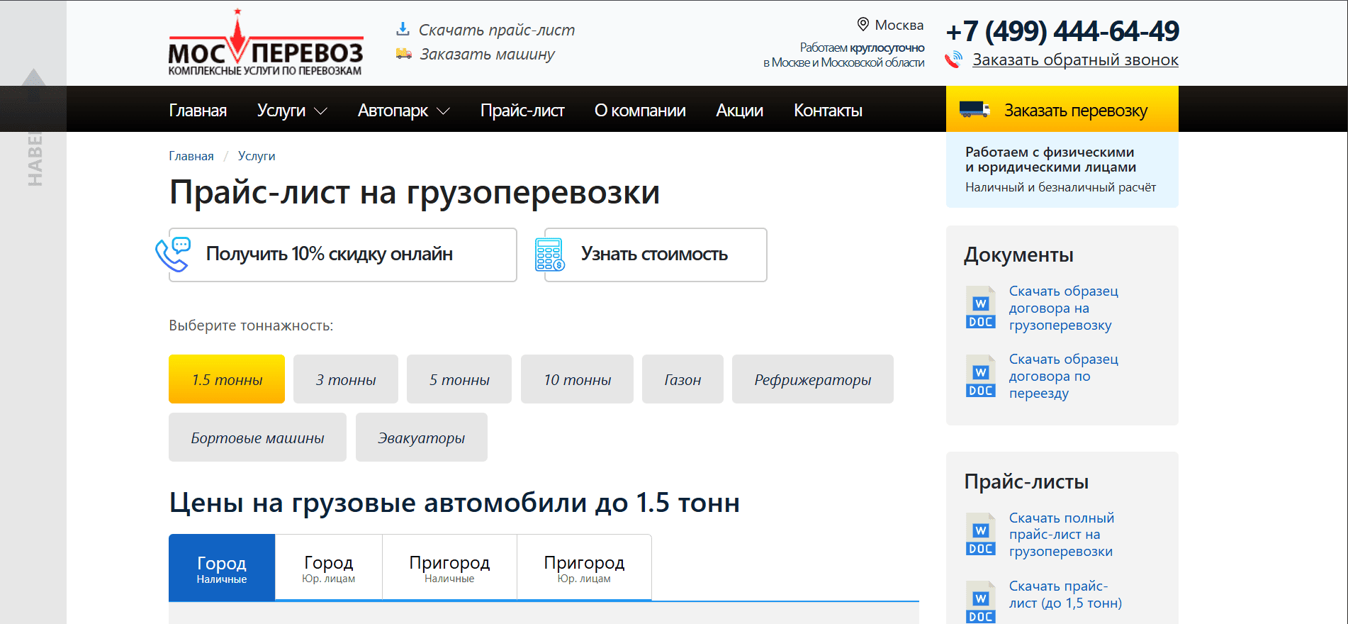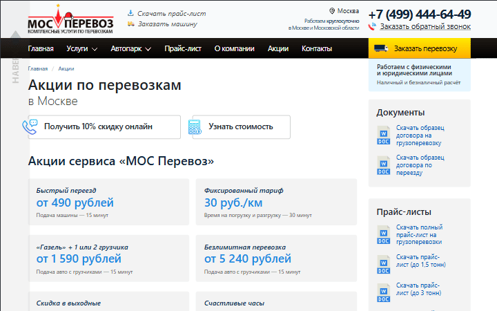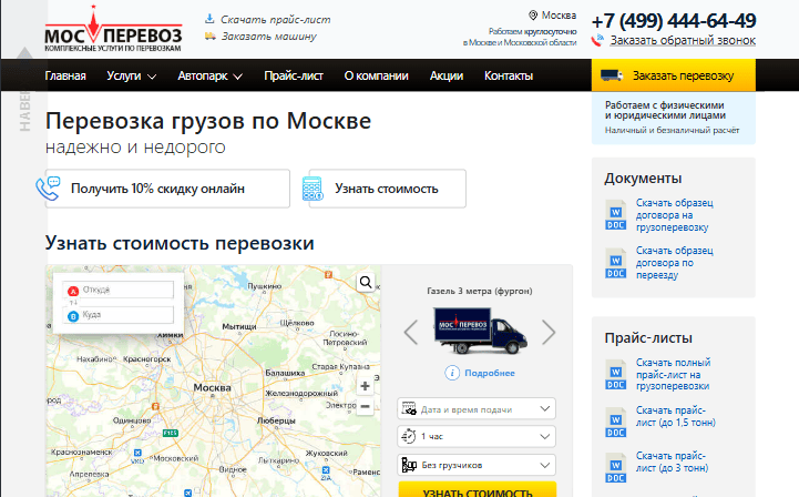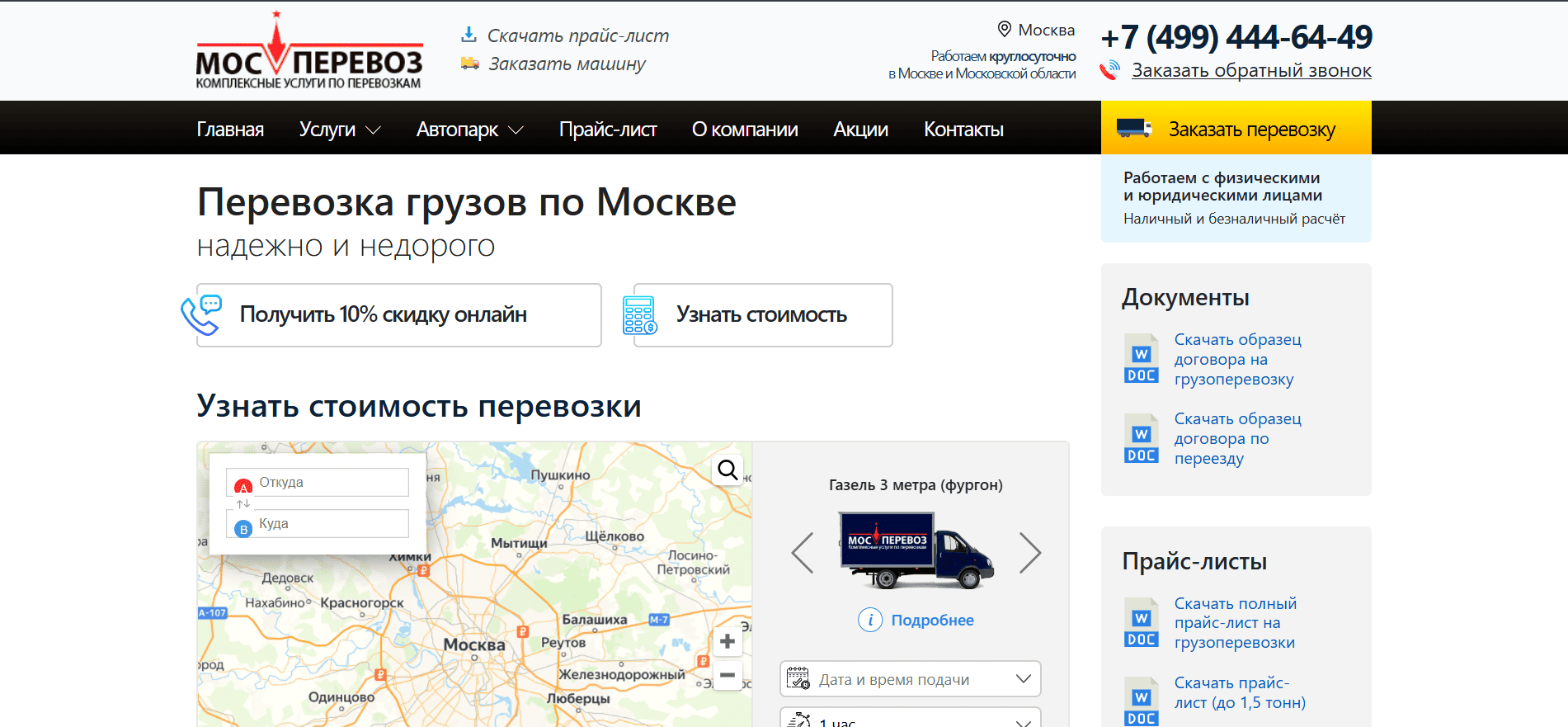Разработка сайта для транспортной компании «МОС Перевоз»: недорогие и надёжные грузоперевозки по Москве и области, квартирные и офисные переезды, услуги грузчиков и подбор оптимального автомобиля под задачу клиента