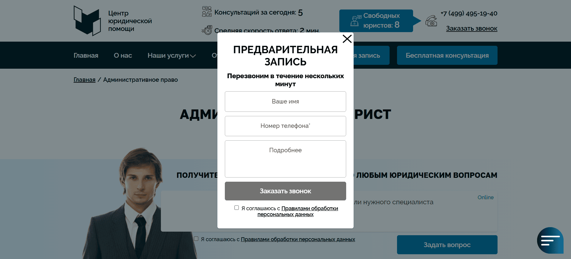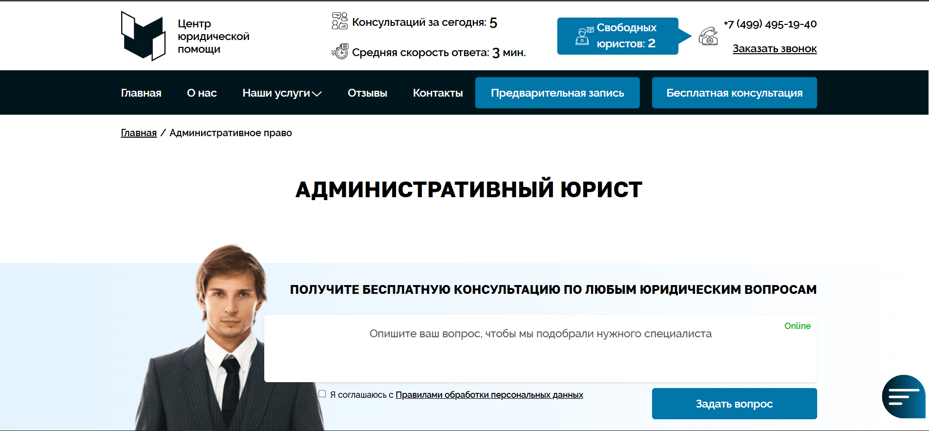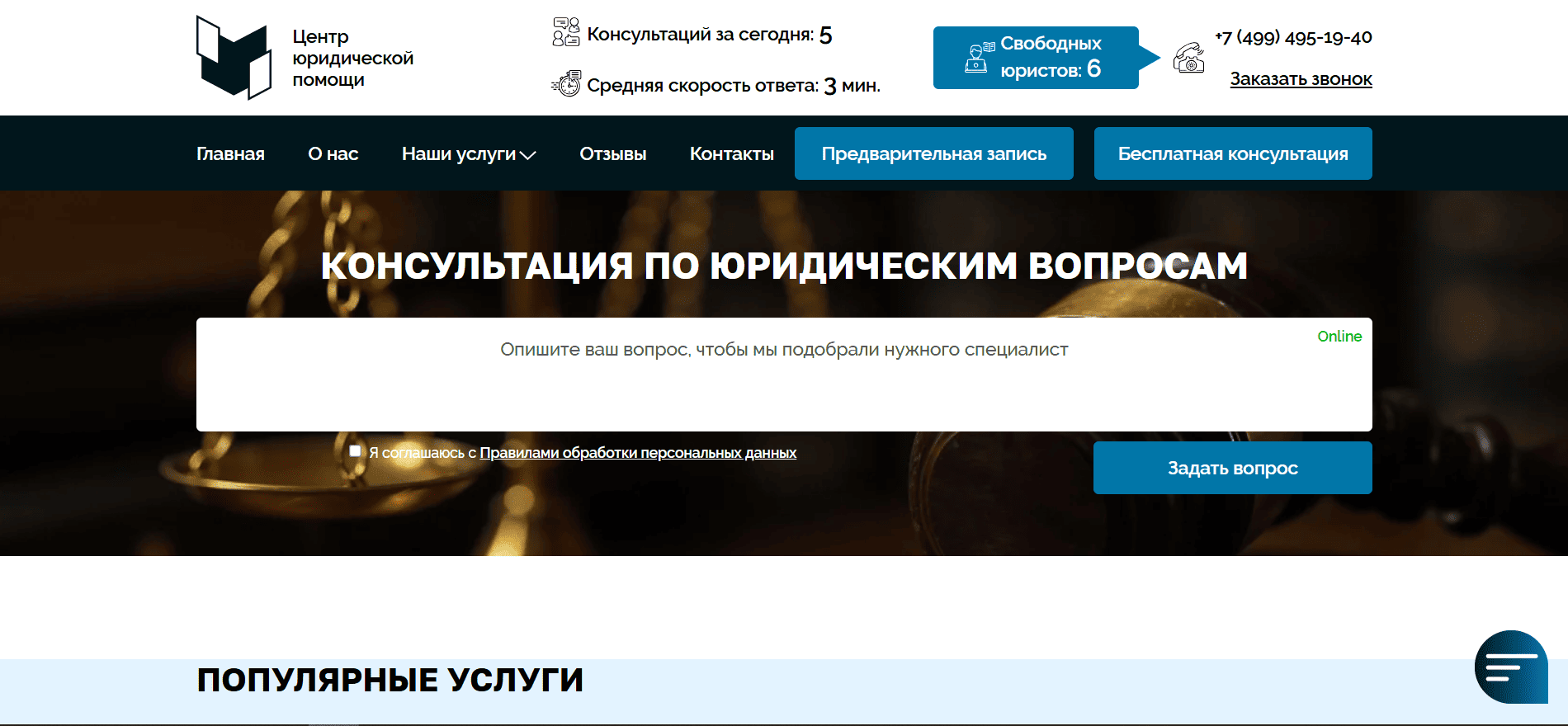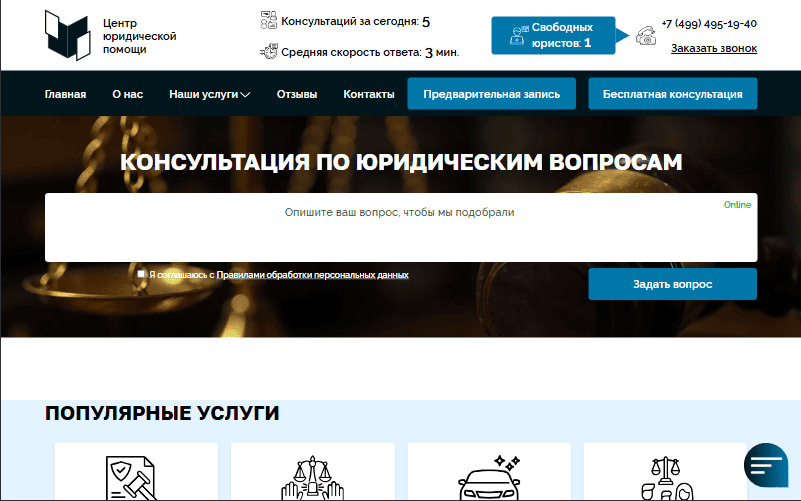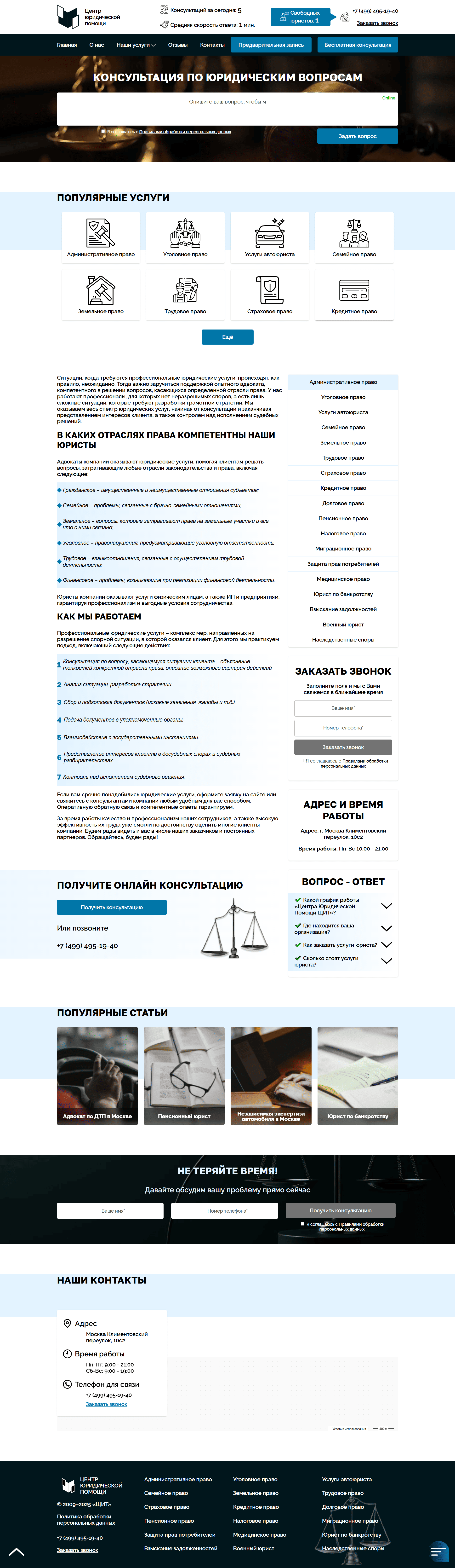 Разработка сайта для проекта «Юрист-МСК»: онлайн-консультации по юридическим вопросам, помощь в подготовке документов, сопровождение споров и оперативные ответы опытных юристов для жителей Москвы и Московской области