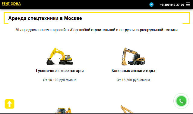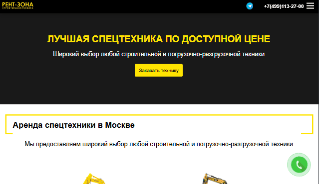 Разработка сайта для компании по аренде спецтехники в Москве: экскаваторы, погрузчики, самосвалы и другая строительная техника для любых задач. Удобный подбор техники под объект, прозрачные условия аренды и оперативная подача по Москве и области