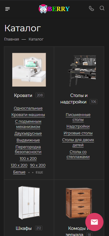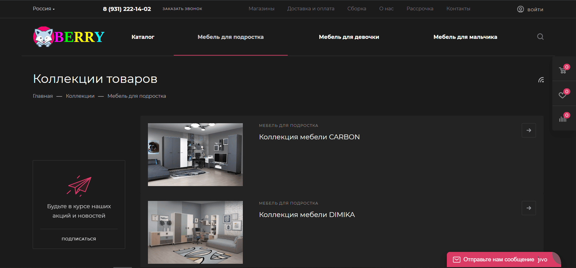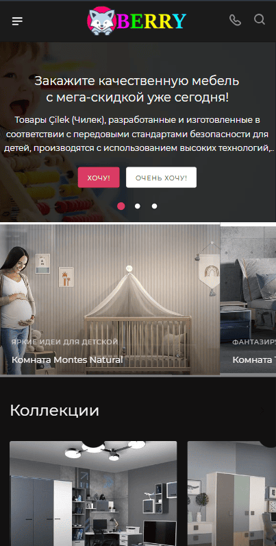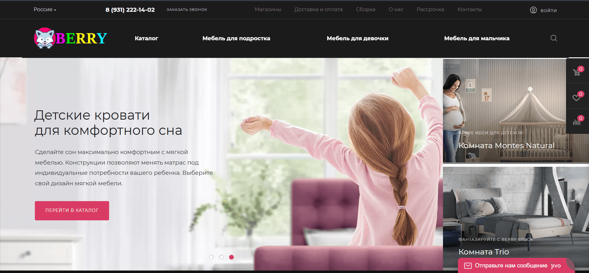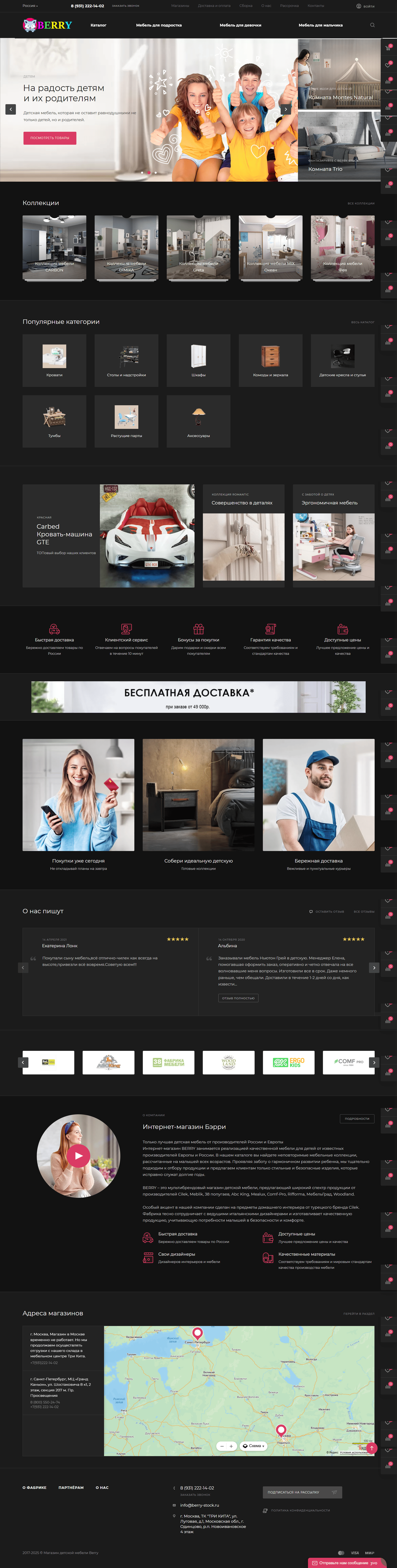 Разработка сайта для магазина детской мебели Berry: кроватки, комоды, шкафы и другие товары для детской комнаты. Удобный каталог, продуманные карточки товаров и акцент на безопасности, качестве и эстетике мебели для детей