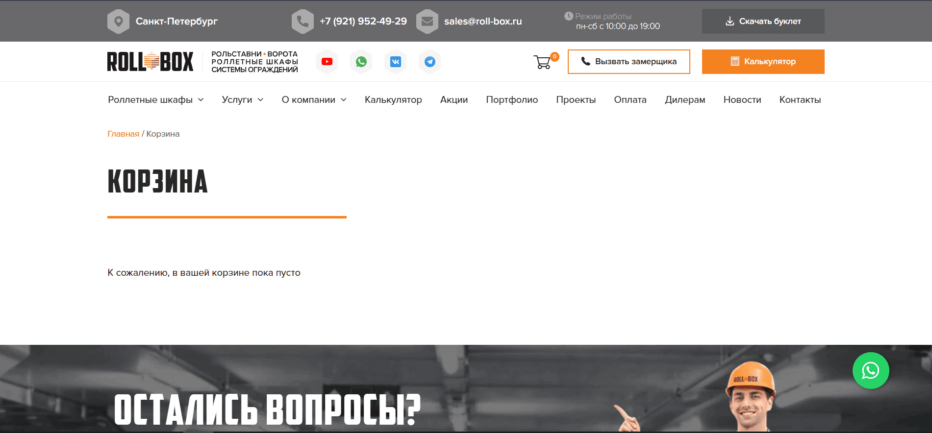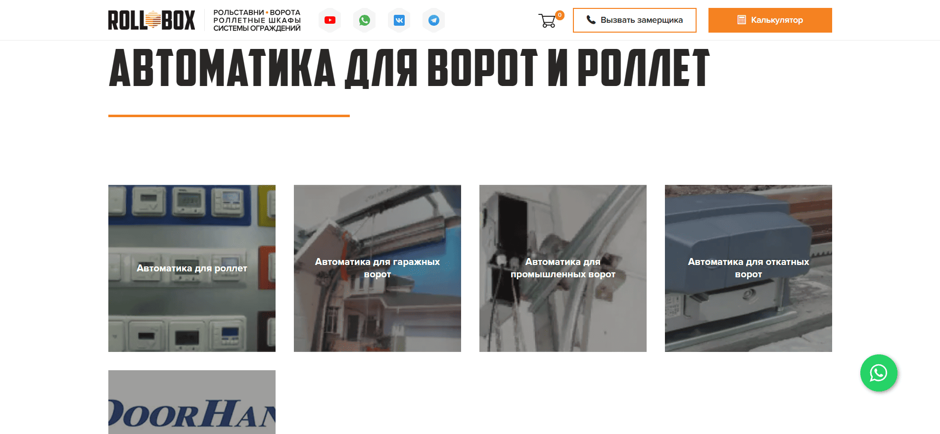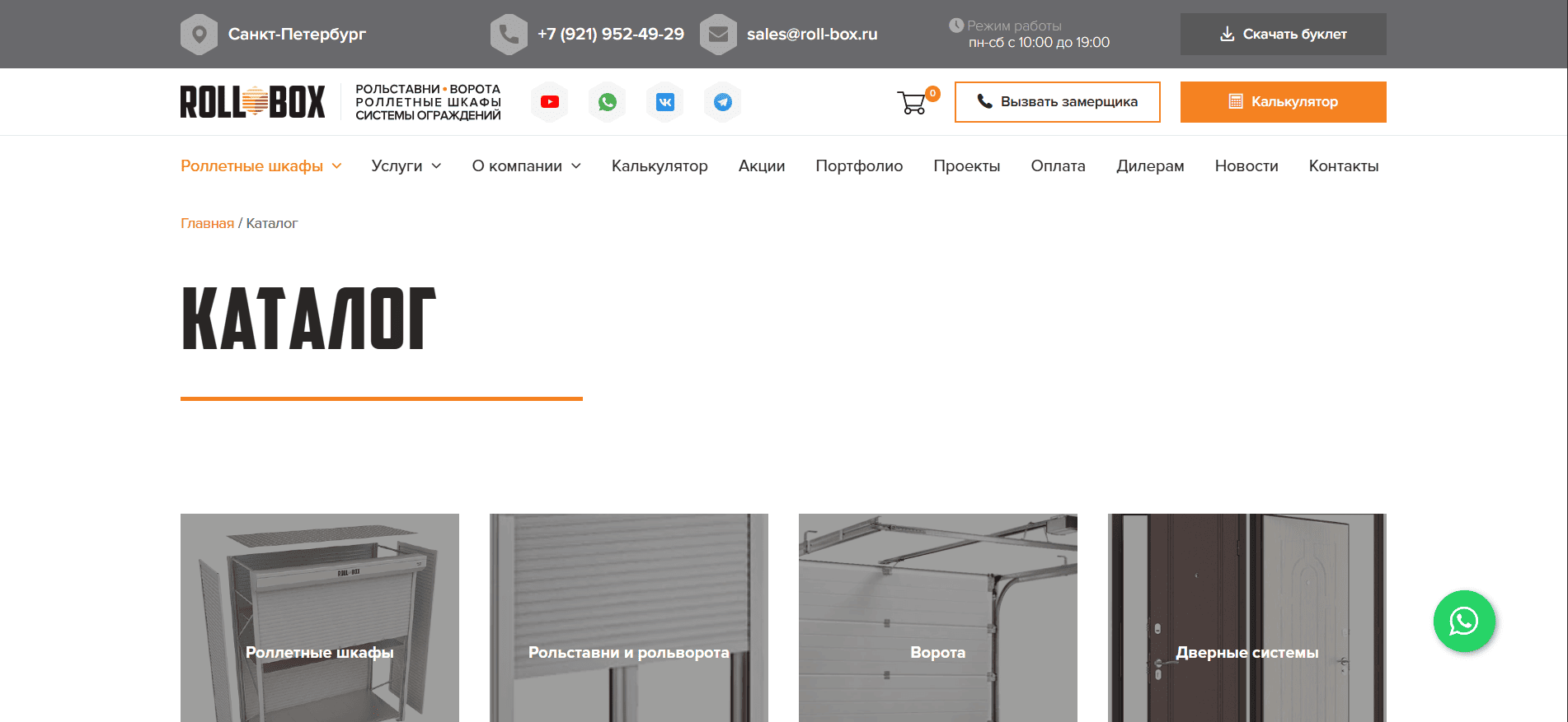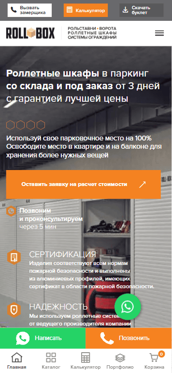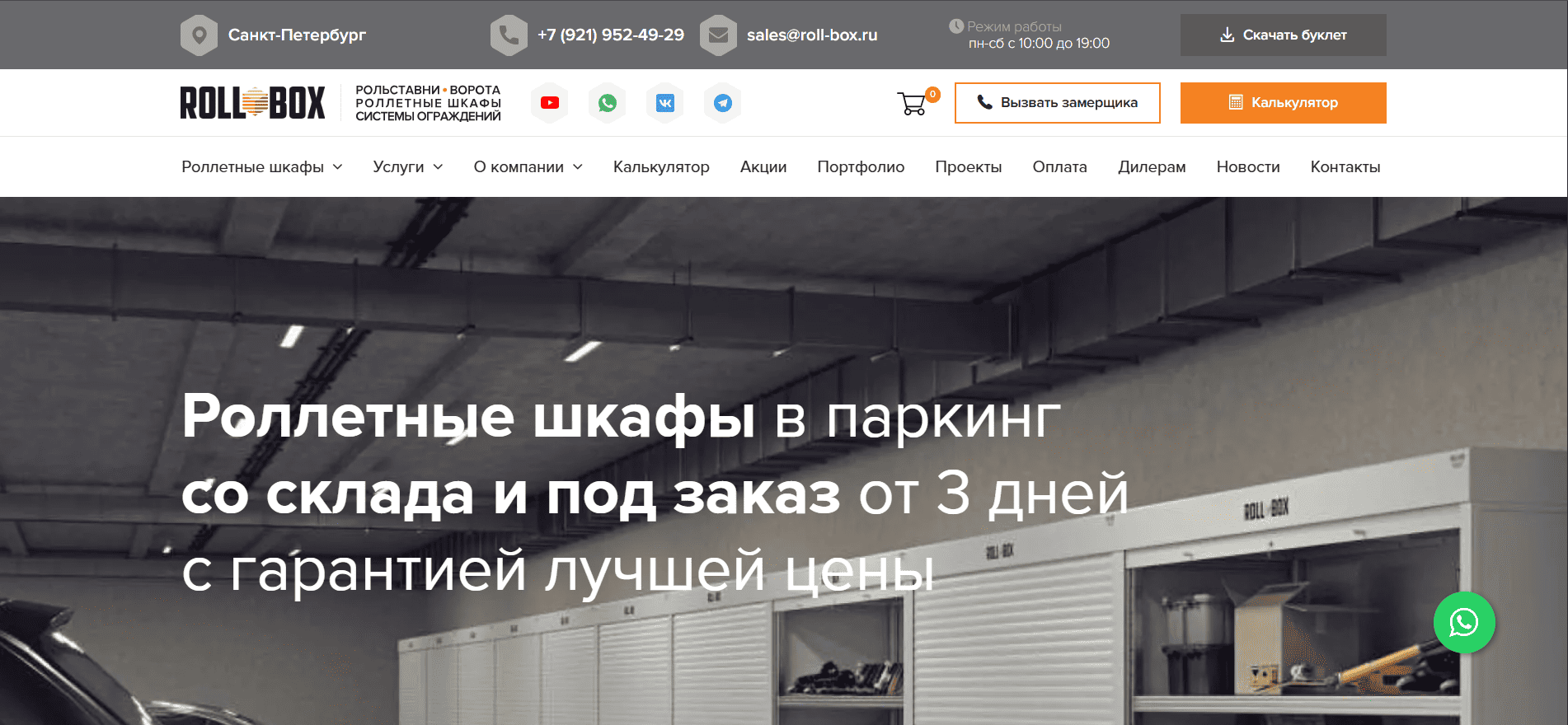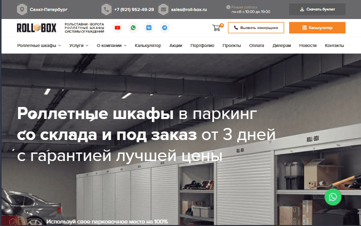 Разработка сайта для Roll-Box: продажа роллетных шкафов для паркинга, дома и дачи. Быстрая доставка со склада и под заказ от 3 дней, гарантия лучшей цены, удобный онлайн-каталог и возможность максимально эффективно использовать своё парковочное место